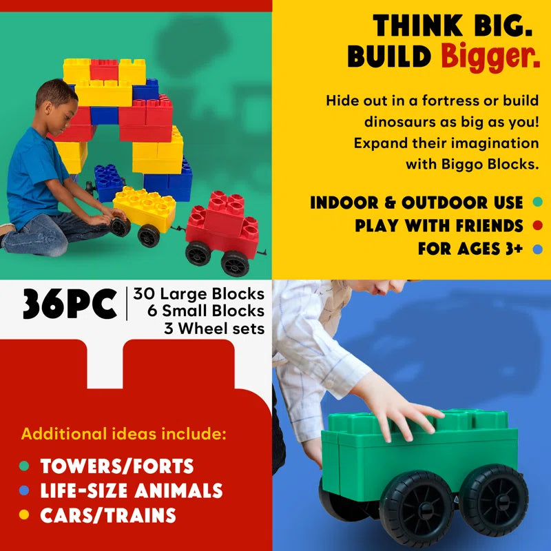 BiggoBlocks Jumbo Blocks with Wheels, for Kids Ages 4-8