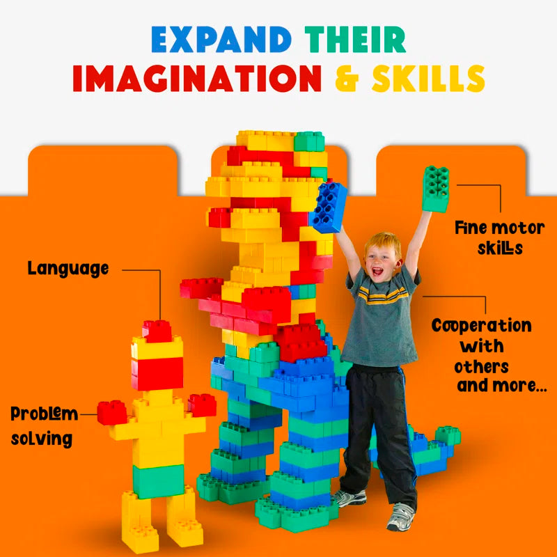 Unleash limitless creativity with our BiggoBlocks! Perfect for kids ages 4-8, these big blocks are designed to inspire and educate. Crafted for both indoor and outdoor use, our jumbo blocks offer endless possibilities. Whether building towering structures with our giant building blocks or creating intricate play spaces with large building blocks, children can explore and grow while playing. Our set includes a variety of large blocks and jumbo building blocks, ideal for younger children, including toddlers ages 3+, who can safely enjoy the fun. These blocks are more than just toys; they are powerful tools for learning and development, supporting STEM education through hands-on play. Unlike ordinary cardboard blocks for kids jumbo or jumbo foam blocks, our durable plastic blocks are made to last, providing a sturdy and safe option for all types of creative construction. Outdoor blocks add a new dimension to playtime, encouraging kids to take their imagination outside. The robust design of our outdoor building blocks for kids ensures they can withstand the elements and provide hours of fun, from simple stacking to complex builds. Incorporating these big blocks into playtime not only sparks joy and excitement but also enhances critical thinking, problem-solving skills, and cooperation among peers. Ideal for both group play and solo adventures, Biggo Blocks are a must-have in any young builder's toy collection. Equip your child with the tools to build their dreams! Our large legos style blocks are not just building toys; they are gateways to creativity and discovery. Perfect for gifts, classroom activities, and family fun—explore the possibilities today!